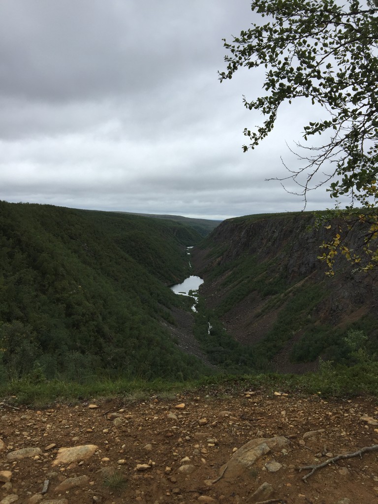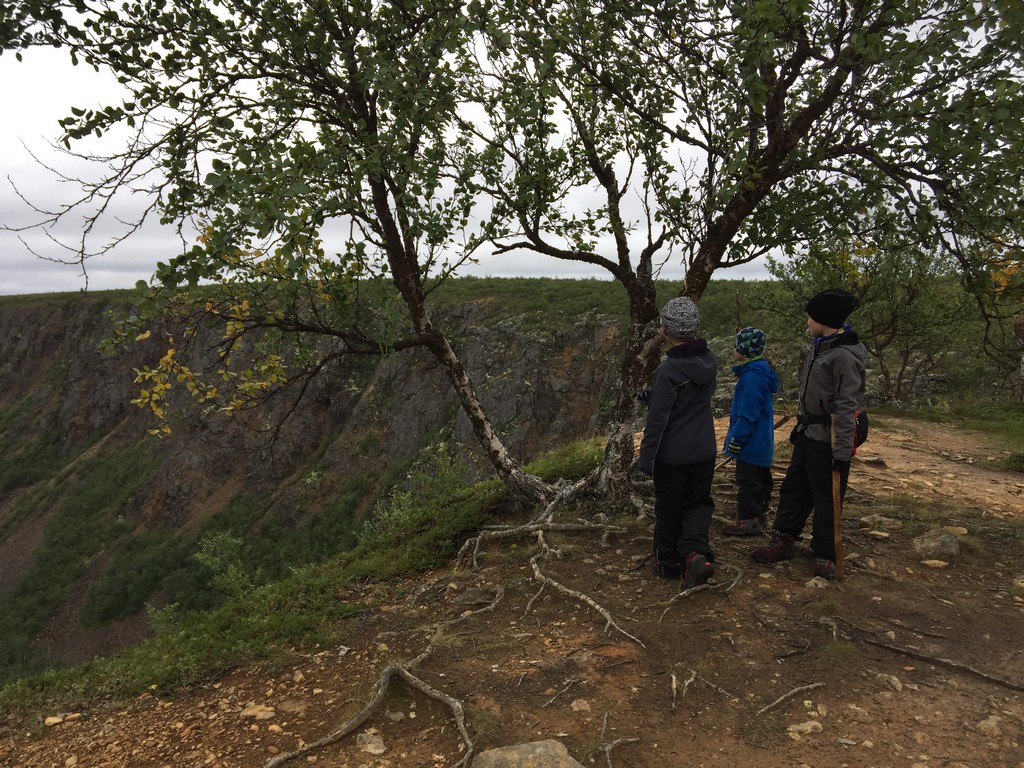 Seuraavana päivänä lounaan jälkeen lähdimme kävelemään kohti kanjonin reunaa ja Fiellun putousta kevyin kantamuksin. Meillä oli mukana vain päivän eväät. Kanjoni aukeni pian matkaan lähdön jälkeen. Pysähdyimme paikalle ottamaan kuvia ja ihailemaan näkymää.